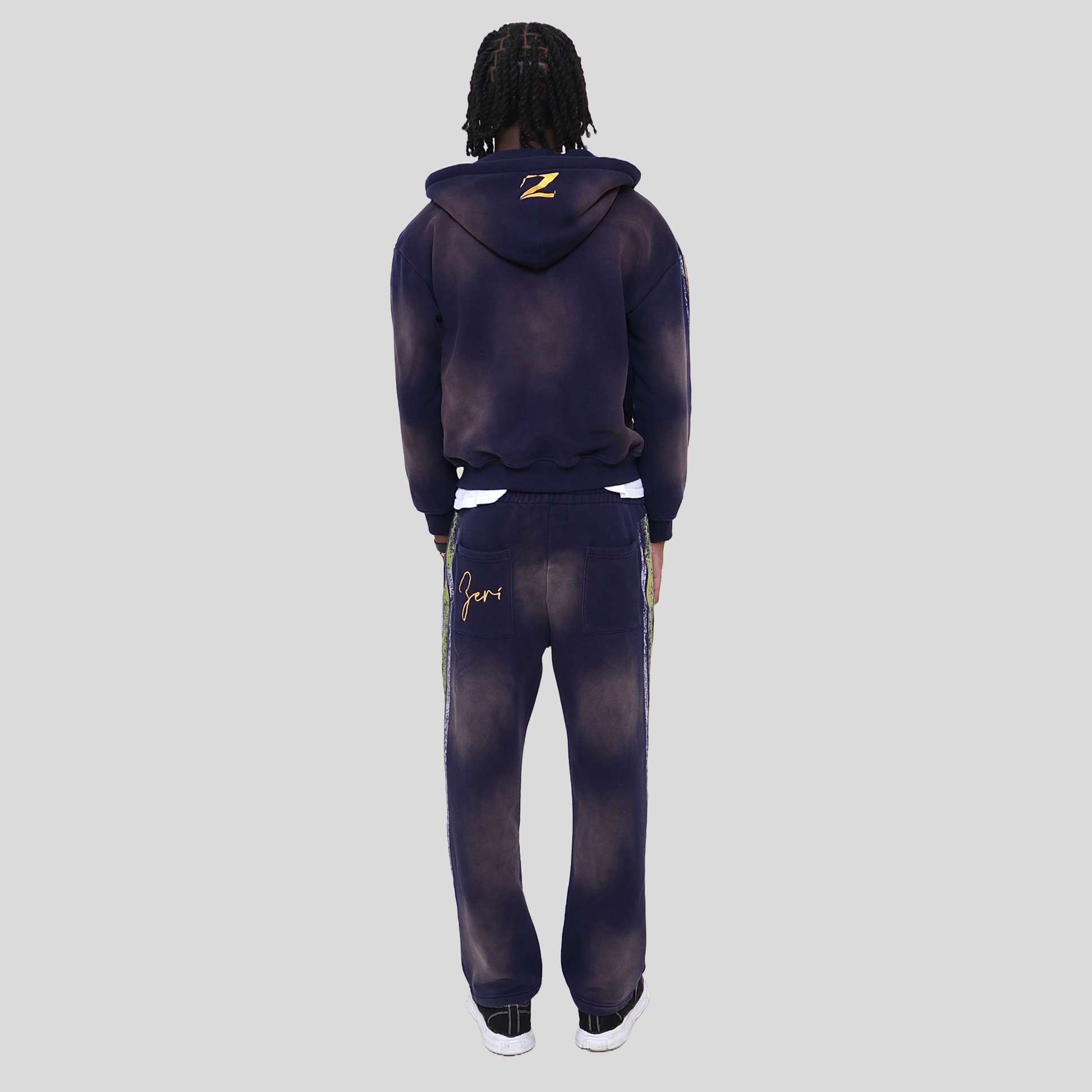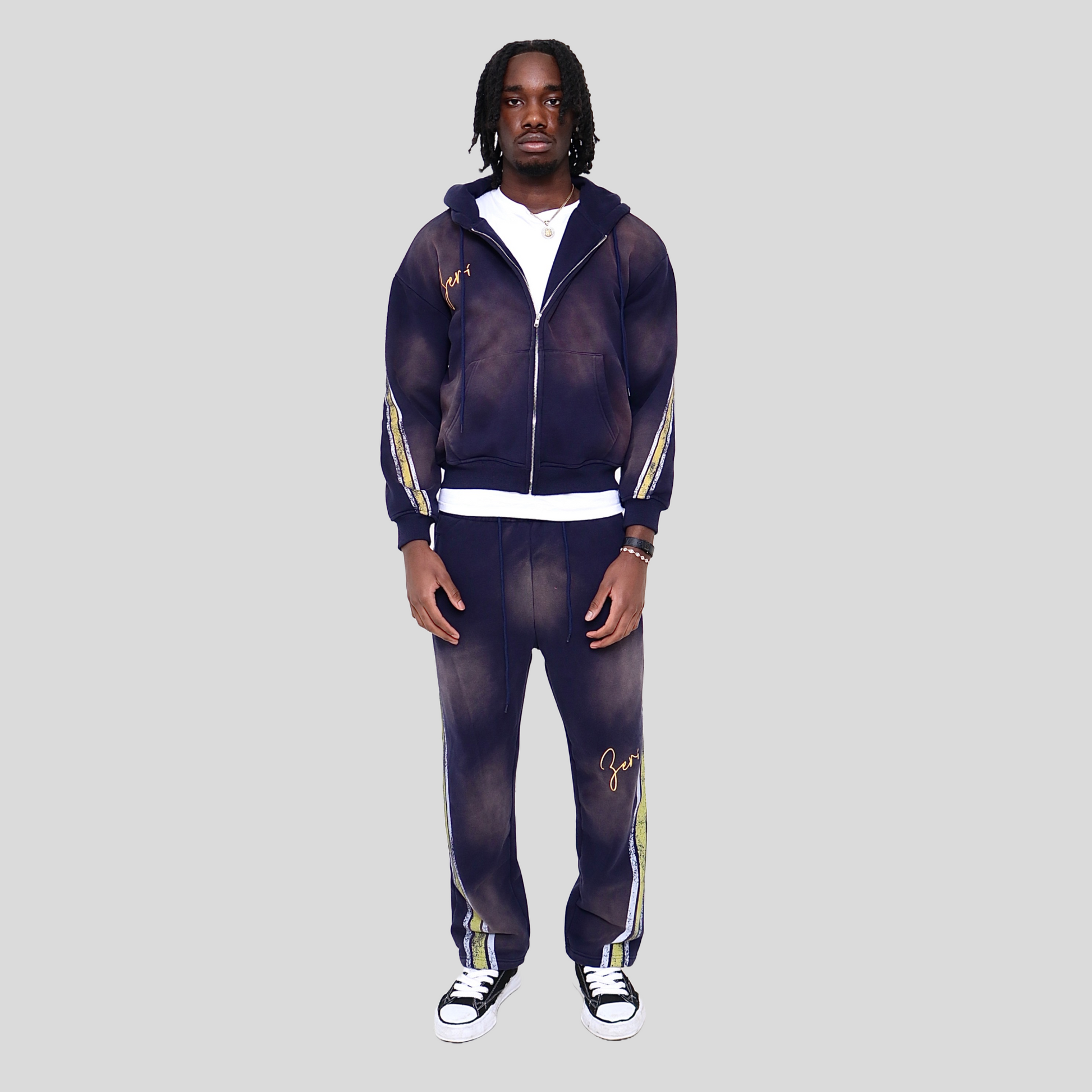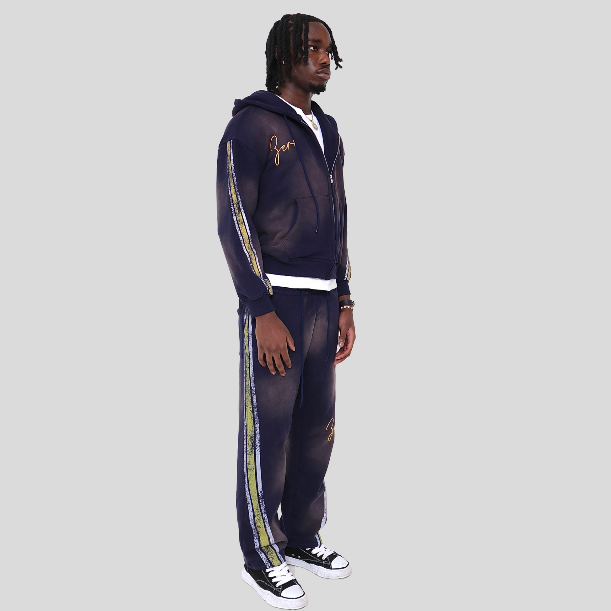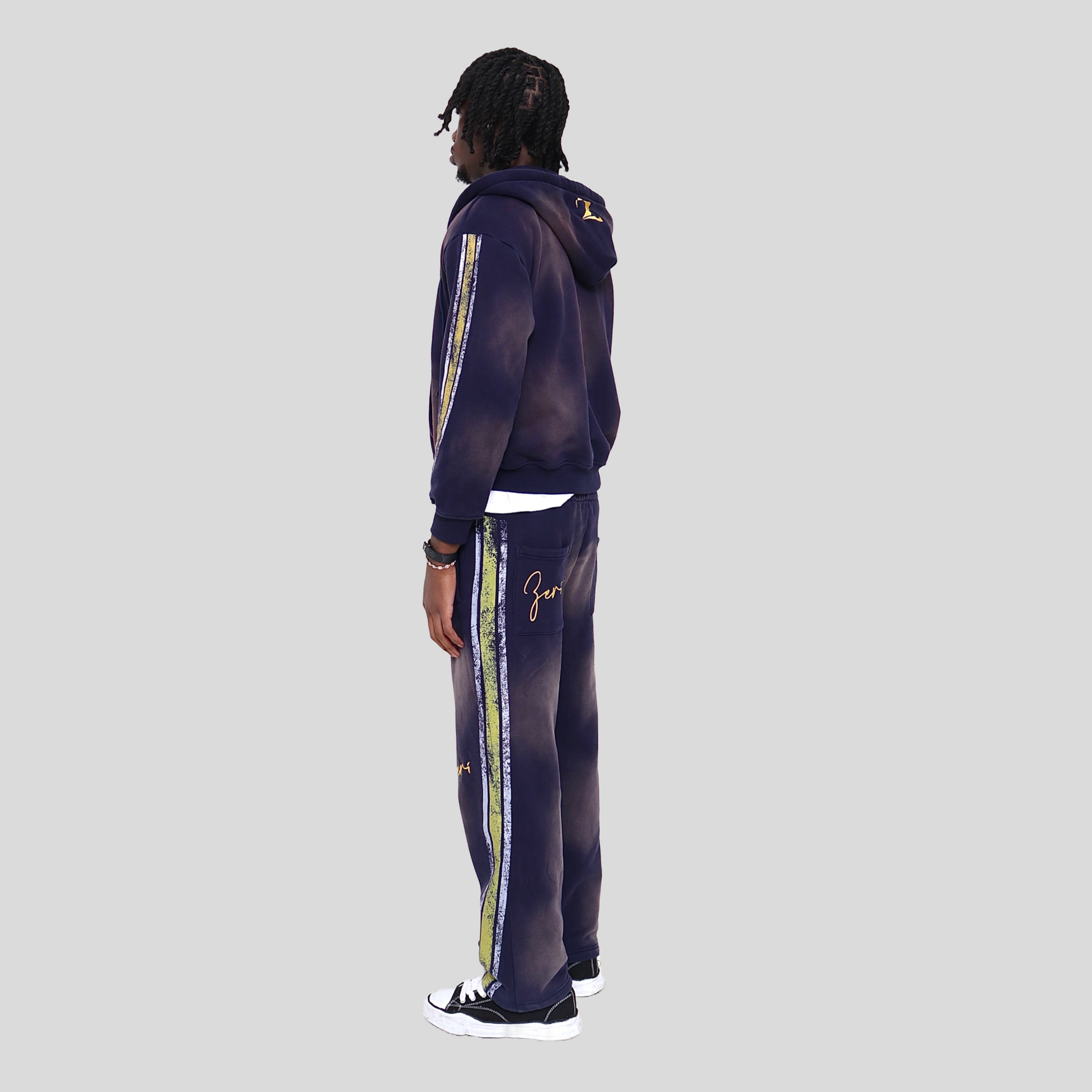Yellow and White Stripes on the Hoodie Sleeves and Side Pants